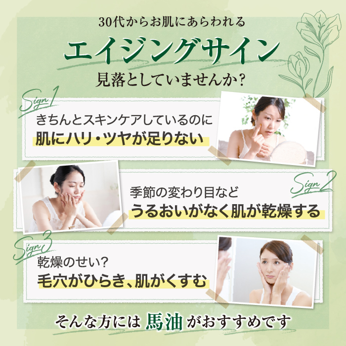 馬油でのスキンケアを行うことで、ハリとうるおいのある肌をキープされているというお声を多数いただいております。
