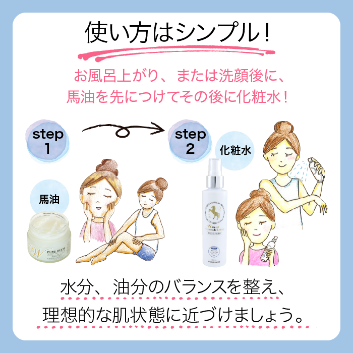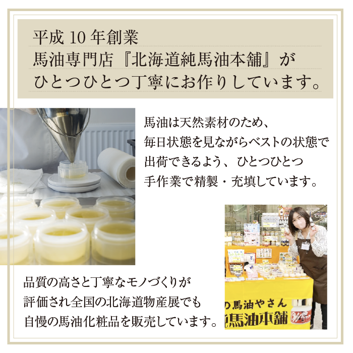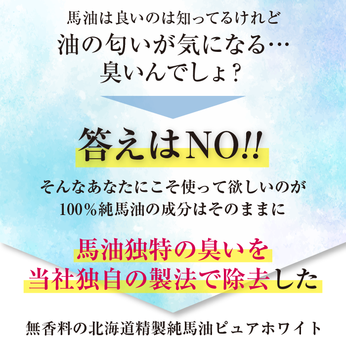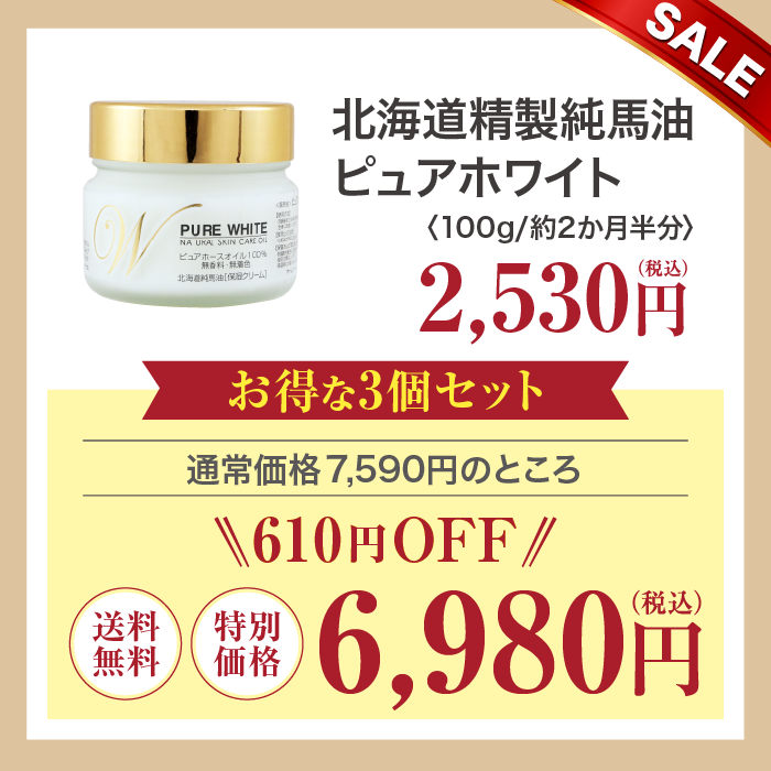 北海道精製純馬油ピュアホワイトは長年使わせて頂いています。
