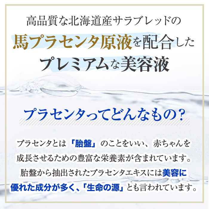 全成分:水、ペンチレングリコール、プラセンタエキス(ウマ)、サイタイエキス(ウマ)、ヒアルロン酸Na、1,2-ヘキサンジオール、フェノキシエタノール