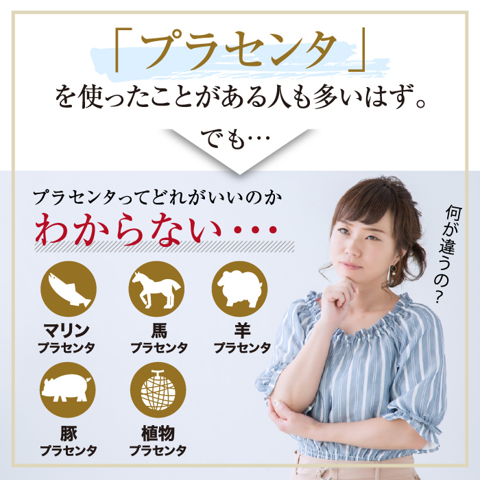 初プラセンタです。色々調べたのですが、やはり普段から使用しているピュアホワイトQ10、ナチュラルセラミドローションに安心感、信頼感があるので、購入を決めました。匂いもなく使いやすいです。まだ効果がわからないので★は4つですが、ピュアホワイトQ10と梱包等お店の皆様の対応は★5以上です!